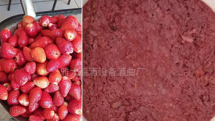 將草莓倒入渣汁分離機(jī)中打碎,然后將果肉和果汁混合均勻,裝入干凈的不銹鋼發(fā)酵桶中,加入一定比例的冰糖水(總加糖量的50%)攪拌均勻。